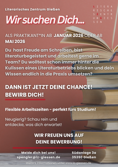mehr lesenVom 23. Dezember bis zum 5. Januar legt das Literarische Zentrum Gießen eine Weihnachtspause ein!