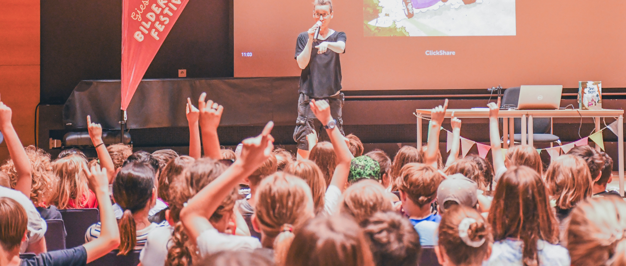 Wir bedanken uns bei allen Beteiligten des Gießener Bilderbuchfestivals 2023: Der Phantastischen Bibliothek Wetzlar, stellvertreten durch Leiterin Maren Bonacker, Hanna Harms (Milch ohne Honig, Carlsen Verlag), Sophie Kurschildgen (Moderation), Martin Baltscheit (Der Löwe, der nicht malen konnte, Beltz Verlag), Birte Müller (Planet Willi, Klett Kinderbuch und Die Kartoffel und der Sinn des Lebens, Verlag Freies Geistesleben), dem Goldberg Verlag sowie Clarissa Corrêa da Silva (Mein wunderbares Ich, cbj Verlag).