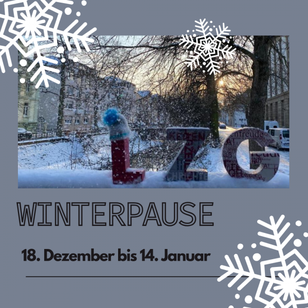 Vom 18.12. bis zum 14.01. verabschieden wir uns in eine geruhsame und entspannte Winterpause. In diesem Zeitraum bleibt das LZG-Büro geschlossen. Nach dieser Erholungsphase sind wir in gewohnter Weise und mit einem aufregenden neuen Programm wieder für Sie da. Wir freuen uns bereits jetzt auf das kommende Veranstaltungsjahr und darauf, Sie wiederzusehen.