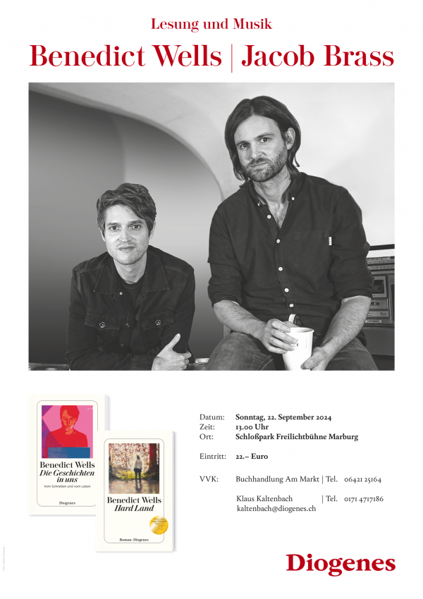 Der Diogenes-Autor Benedict Wells (40) ist seit seinen Super-Bestsellern Vom Ende der Einsamkeit und Hardland einer der beliebtesten Autoren seiner Generation. Ein einzigartiges Ereignis erwartet Marburg. Wells wird nur drei Mal in Deutschland auftreten und in unserer Stadt seine Premieren-Lesung mit musikalischer Begleitung seines Freundes, des Rockmusikers, Jakob Brass auf der Openair-Bühne im Schlosspark auftreten und sein neues Buch Die Geschichten in uns vorstellen. Er gibt darin ungemein intime Einblicke in seine Schriftsteller-Werkstatt, näher können sich Lesen und Schreiben nicht kommen. Es ist eine Liebeserklärung an das Schreiben, genauso wie ein Warnung davor.