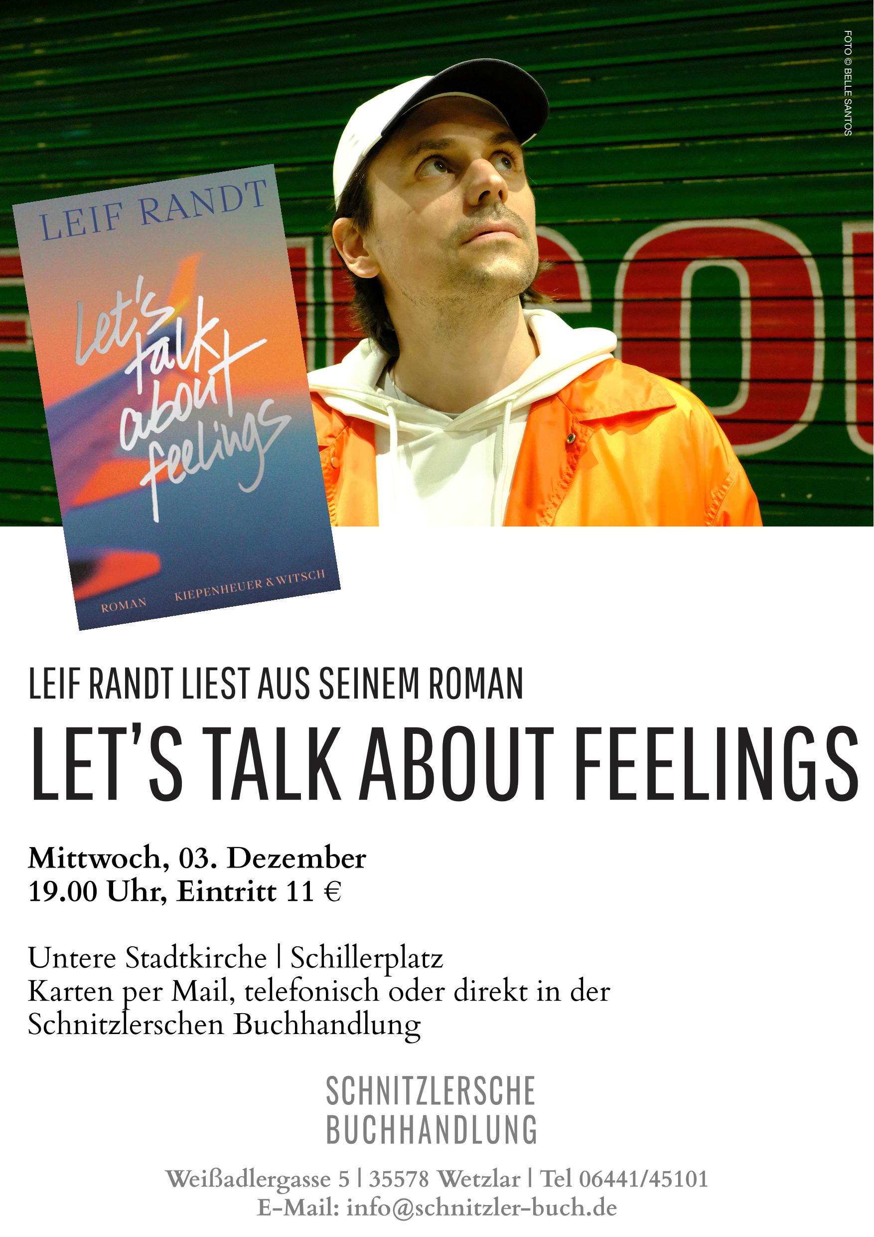 Am Mittwoch, den 3. Dezember 2025, um 19 Uhr liest Leif Randt aus seinem Roman »Let's talk about feelings«.