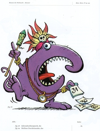 Der erste kommt aus den Federn von Christian Moser und Carolin Sonner: Monster der Weihnacht, ein Sonderband der Serie Monster des Alltags. Die Monster des Alltags, „jene psychischen Parasiten, die unser Denken, Fühlen und Handeln auf höchst eigennützige Weise beeinflussen und uns zu den fragwürdigsten Verhaltensweisen verleiten“ (6), diese Monster haben Hochkonjunktur in Extremsituationen – womit die Rechtfertigung des Sonderbands schon gegeben wäre, denn was ist die Adventszeit, wenn nicht eine Extremsituation? Christian Moser und Carolin Sonner geben lexikonartige Definitionen der unterschiedlichsten menschlichen Verhaltensweisen und Schwächen, die sich in der Vorweihnachtszeit auftun – von positiven Seelenzuständen wie der Vorfreude, über gesellschaftliche Traditionen, hin zu den typischen Weihnachtsmiesmachern wie der Jahresabschlusspanik oder dem eigensinnigen Hintergedanken bei der Wahl der Geschenke. Schmunzelnd werden sowohl Weihnachtsmuffel als auch -Liebhaber bei der Lektüre der humoristisch geschriebenen und liebevoll illustrierten Definitionen über sich selbst lachen können.